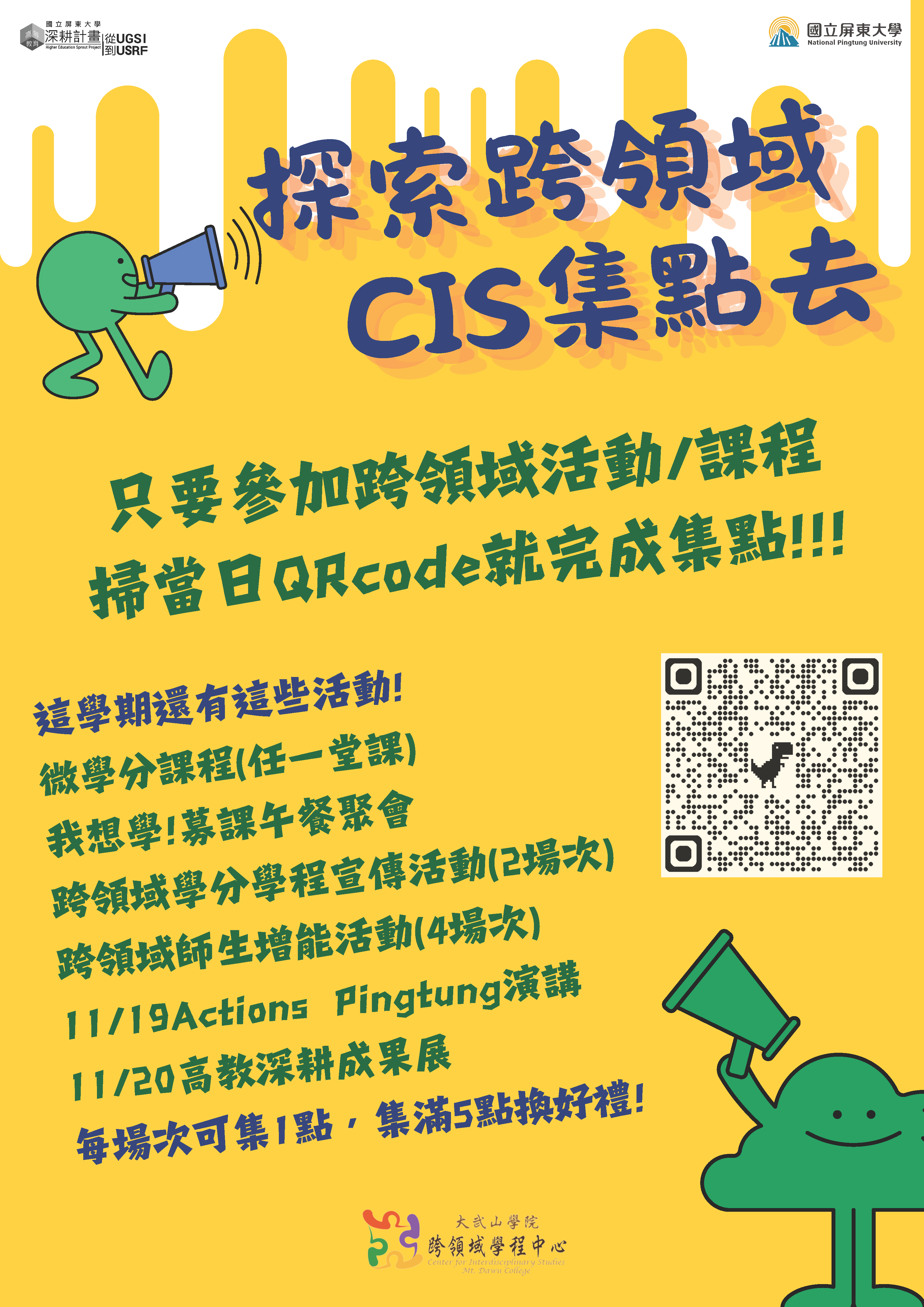 學生在114-1學期集滿 5 點即可於上班日至跨領域學程中心兌換禮物一次/人。