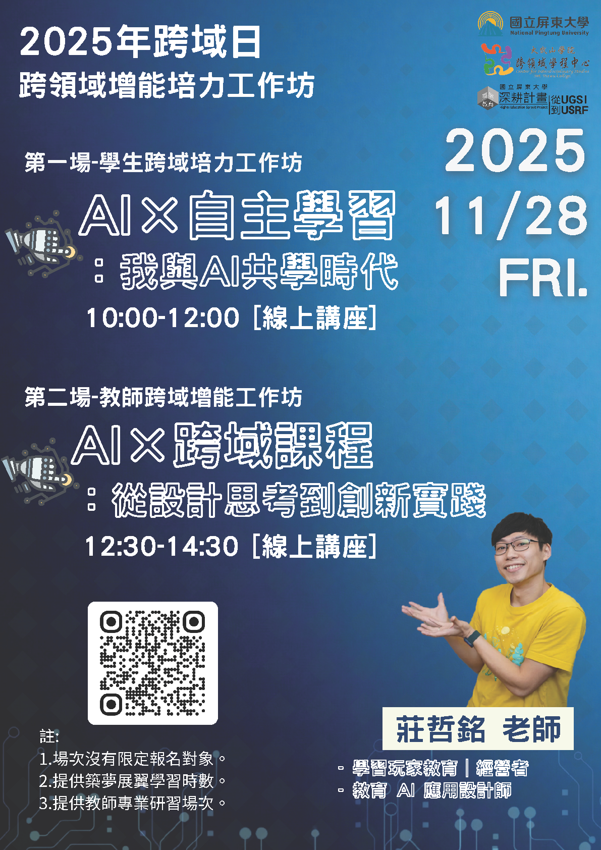 【跨域日】11/28(五) AI X 跨域 師生增能培力工作坊